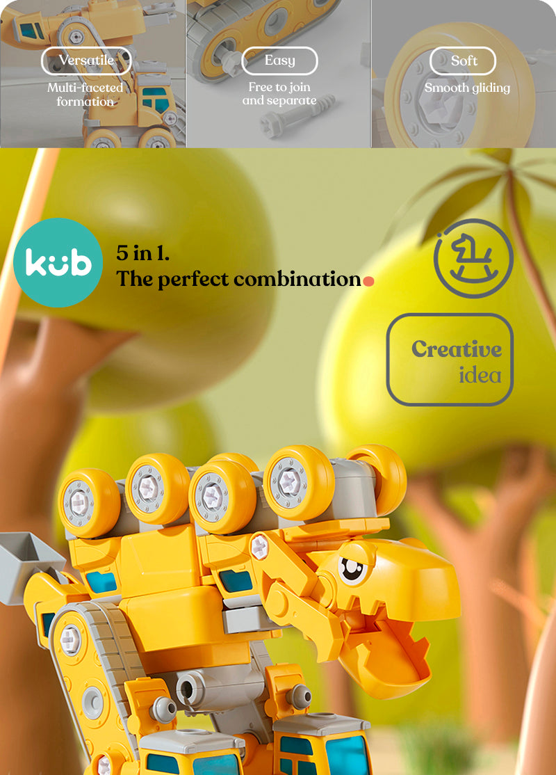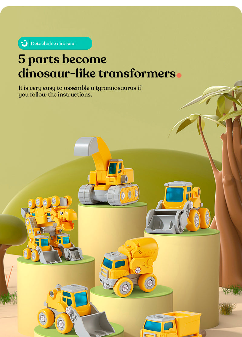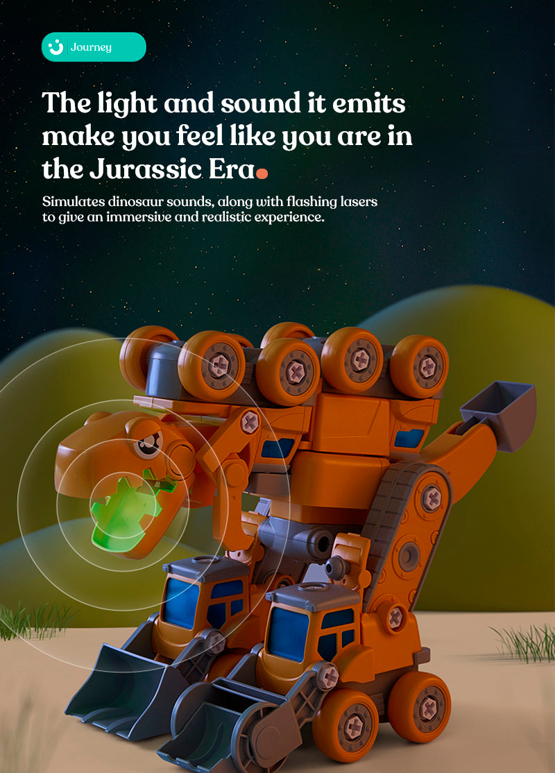 5-in-1 assembly, creative screwdriver, transforming from a dinosaur into a robot.
