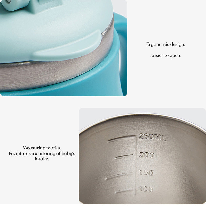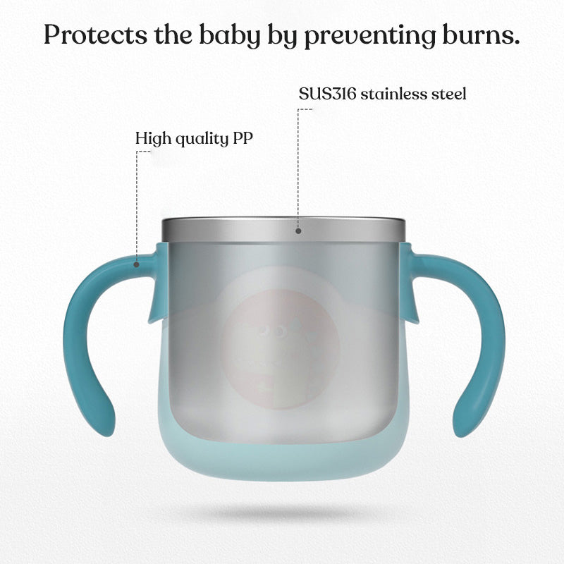 Duckbill cup, direct drinking cup, stainless steel inside and silicone outside, cleans without any dead angles, just the right size for babies to hold.