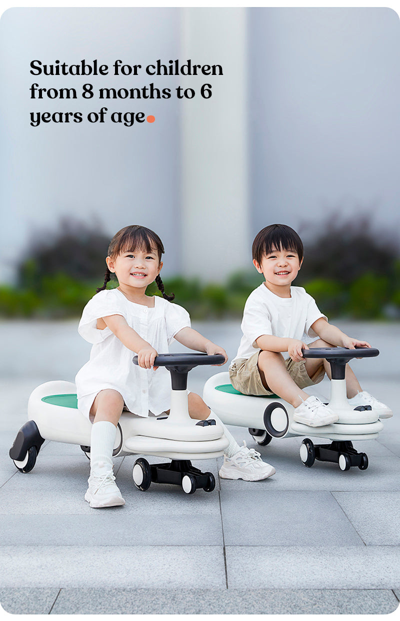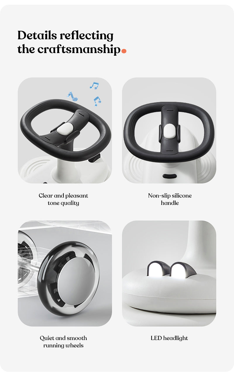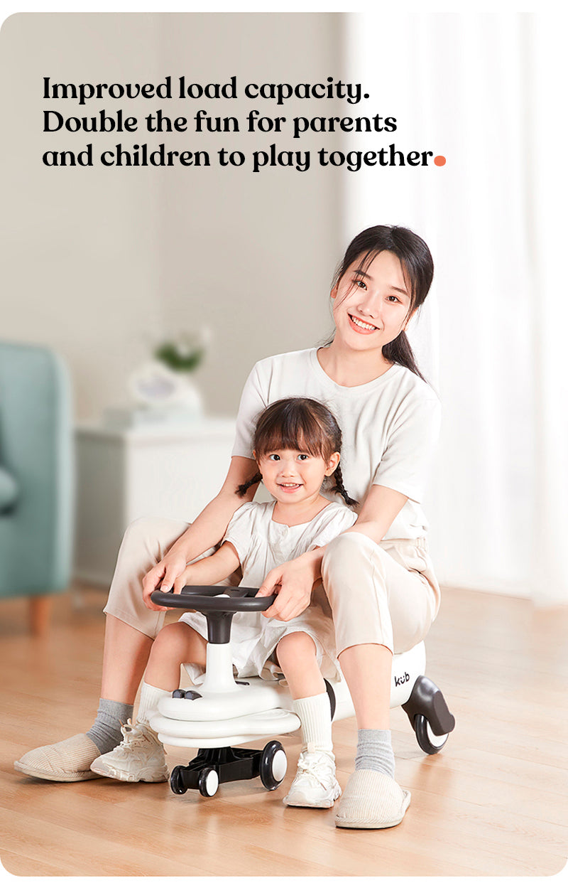 20+ bilingual music for growth with built-in BGM (background music), upgraded load-bearing capacity, moms can also sit together. Equipped with speakers and cool flashing lights, eye-catching magnetic flash. With a 365mm extended design, it's the Rolls-Royce of twist cars.